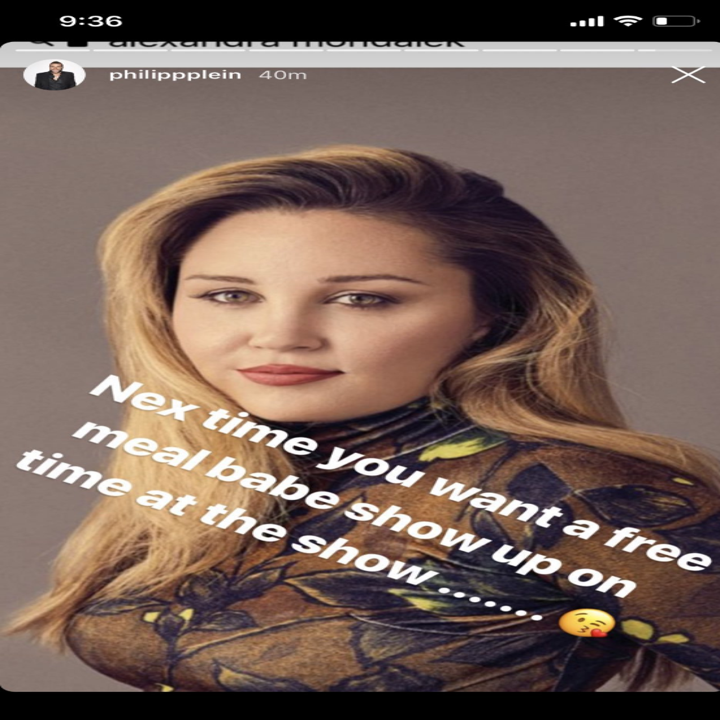 Mondalek told BuzzFeed News she had covered Plein before, in a reported feature for Yahoo Lifestyle in 2017. Plein is known for making a spectacle of his runway shows, and this year's show already was full of drama. Last week, TMZ reported Plein was scammed out of almost $1 million by someone pretending to be a rep for Kanye West, who promised West would perform at the show.