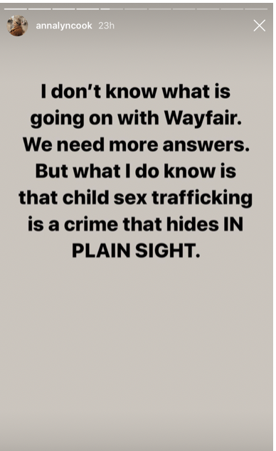 I’ve seen no fewer than 6 Phoenix-area Instagram influencers post about the Wayfair conspiracy theory so far. The posts range from “is this true?!” to “I’ve done my research and concluded this is real.”