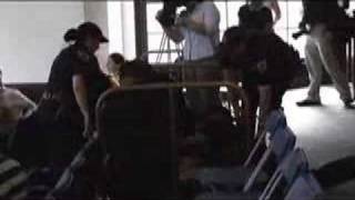On September 17, 2007, Sen. John Kerry addressed University of Florida students in Gainesville. 21-year-old Andrew Miller entered into a line of questioning and was eventually escorted away from the microphone, but resisted the campus security and was arrested by the University's police. Miller resisted arrest, yelling for "help" and asking what he had done wrong, while the police struggled to keep him restrained. One of the officers eventually withdrew his taser, causing Miller to plead "don't tase me bro!" He was subsequently tasered. Several videos of the incident were posted to YouTube and they have millions of views. The Yale Book of Quotations designated the exclamation as the most memorable quote of 2007, and The New Oxford American Dictionary made "tase/taze" one of their words of the year.