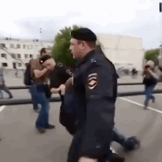 He held a poster that read "Homophobia Is a Cover-Up for Dictatorship" and listened as the protest organizers delivered their opening statement to the press. Everyone expected what happened next. A police horn blared. The cops started detaining the protesters — and a few of the angry young men with shaved heads who rushed to attack the demonstrators with pepper spray. Two officers dragged Revin toward a waiting police bus.