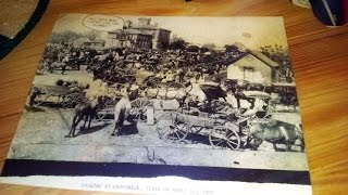 The image appears to show a crowd of white people observing the hanging of at least one black person. The caption at the bottom of the photo reads, "Hanging at Groesbeck, Texas on April 12, 1895."