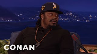 Former Seattle Seahawks running back Marshawn Lynch shared his thoughts on 49ers quarterback Colin Kaepernick’s national anthem protest on Conan O’Brien's show on Tuesday.