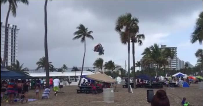 Fort Lauderdale Beach visitors encountered an uncanny yet dangerous situation this afternoon when a waterspout blew onto shore and sent a bounce house careening into the air, injuring several children.