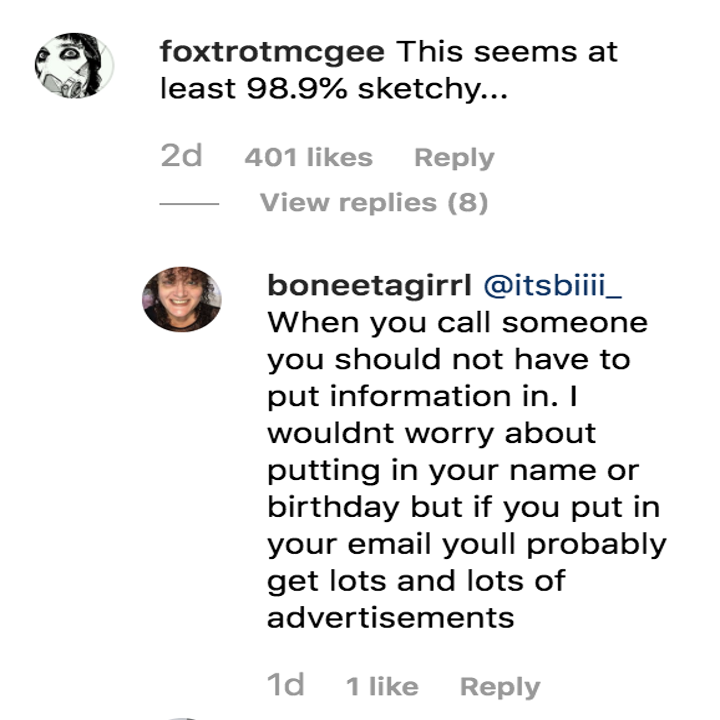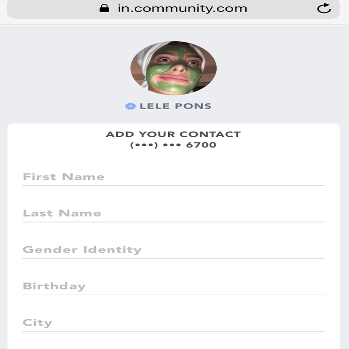 Those who try to text Pons at the number provided get an automated response. They're also prompted to click on a link to Community's website. The company then asks users to enter personal information, including their name, gender identity, birthday, and location, in order to proceed.