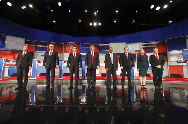 * The main debate featured businessman Donald Trump, former neurosurgeon Ben Carson, Florida Sen. Marco Rubio, former Florida Gov. Jeb Bush, former HP CEO Carly Fiorina, Texas Sen. Ted Cruz, Kentucky Sen. Rand Paul, and Ohio Gov. John Kasich.