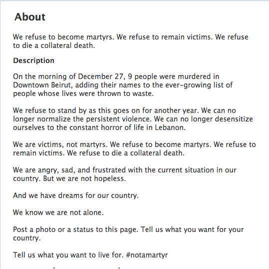 Post a selfie for 2014 stating a resolution regarding reclaiming Lebanon. We are victims, not martyrs. #notamartyr