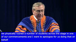 University of Florida President W. Kent Fuchs acknowledged that the employee was "inappropriately aggressive in rushing students across the stage" and apologized to the students involved.