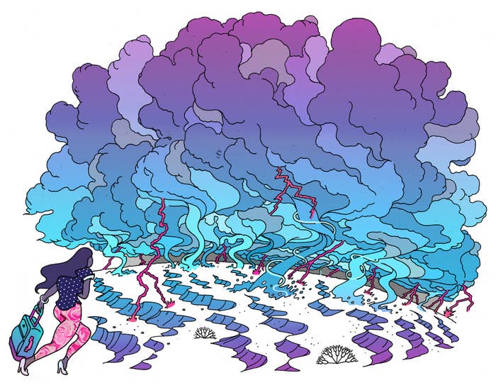 If I had to describe what having anxiety feels like, I’d say that it’s kind of like walking through the world beneath tornadic skies without an umbrella, unsure if you’ll be able to find shelter if things get bad. When friends invite you out, you politely decline because while you’d like to enjoy their company, the sky could open up and wash you out to sea at any minute so it’s probably safer for you to stay at home. In the background of anything you do is the gentle hum of your nervous system as it tosses and turns, wondering when the deluge will hit, thinking about how unfortunate will be if you don’t survive it. And what kind of storm will it be? Something huge? Just enough raindrops to ruin your hair? Will the people you love be OK? Can you handle it? If you can’t, will people be able to witness you failing to handle it? How will you handle that?
