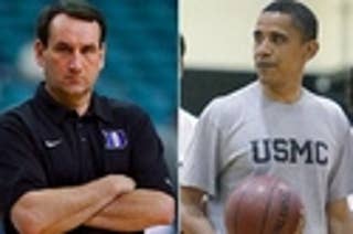 The Duke basketball coach is not too pleased with Barack Obama's Final Four choices.
