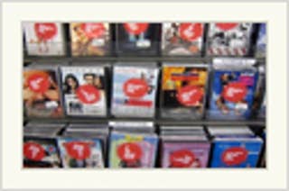 Prank person/artist Evan Roth made these stickers and applied them to all the DVDs at a random store.