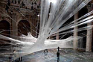 A Viennese/Croatian design team used a former stock exchange building to create this giant spider web made entirely out of packing tape (via Geekologie).