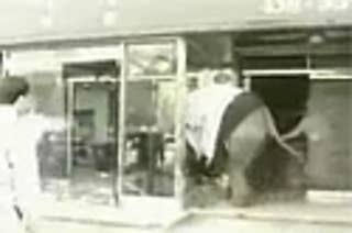 Something set this elephant off as it crashes into a store. Not sure if the elephant is scared or angry, but thankfully, it chooses not to attack anybody other than furniture and calms down by the end of the clip.
