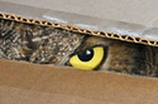 Pictures of a rescued Owl, not at all happy about being put in a cardboard box.