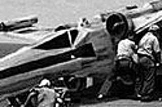 "Fictional" star-fighter from the original Star Wars Proof that George Lucas is a cyborg and is really over one hundred years old.