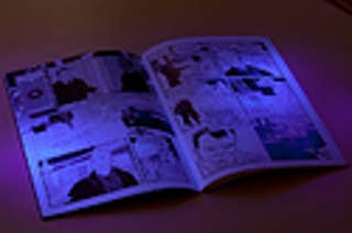Writer Warren Ellis and artist D'Israeli have teamed up to create an experimental ultraviolet comic called SVK. It's a detective story Ellis describes as "Franz Kafka's Bourne Identity," but it's meant to be experienced in a unique way -- the comic comes packaged with a UV torch that reveals dialogue published in invisible ink. If you want it, it's available via mail order only. (From Berg, via warrenellis.com and Boing Boing)
