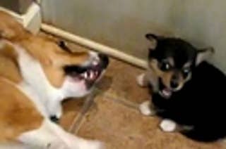 Who will win the face-off? Why the little corgi, of course.