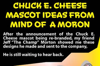 Crap pizza place Chuck E. Cheese is re-designing their mascot. Here are a few great suggestions... More great comedy at Bite.ca