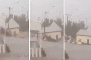 Video has been uploaded from Dungog, NSW, showing a house moving through storm debris.