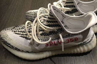A black and cream pair of the adidas Yeezy 350 Boost.