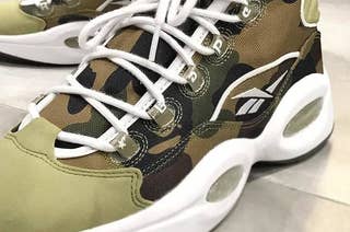 Bape's latest Reebok collaboration puts the streetwear brand's olive camo on the Question.