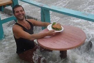 The people at Woody's Waterfront restaurant, in Saint Petersburg, Florida, aren't letting a little rain ruin their fun!