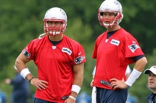 Caption This: The First Photo of Tim Tebow and Tom Brady on the Practice Field Together