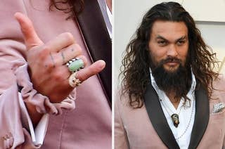 We Need To Talk About Jason Momoa's Gorgeous Pink And Velvet Scrunchy That He Wore To The Oscars