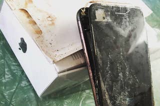 A Reddit user shares photos of a scorched iPhone 7 Plus that allegedly exploded in its packaging.