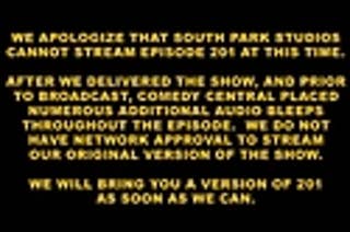 "In the 14 years we’ve been doing South Park we have never done a show that we couldn’t stand behind. We delivered our version of the show to Comedy Central and they made a determination to alter the episode. It wasn’t some meta-joke on our part. Comedy Central added the bleeps. In fact, Kyle’s customary final speech was about intimidation and fear. It didn’t mention Muhammad at all but it got bleeped too. We’ll be back next week with a whole new show about something completely different and we’ll see what happens to it." For shame, Comedy Central.