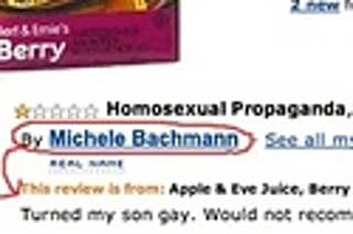 Apparently, presidential candidate Michele Bachmann is a dedicated Amazon.com user, who writes unbiased reviews on products she's purchased. Well, mostly unbiased.