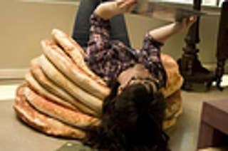 A stack of relaxable floor pillows in the shape of mouthwatering pancakes. Even includes oversized butter pillow toppers, a sexy chick to lay with, and a life-sized bottle of maple syrup. Just kidding -- no life-sized bottle of maple syrup.