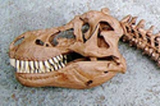 A scale replica of a Tyrannosaurus rex skeleton, demonstrating how it may have moved when alive. From the "Dinosaurs: Ancient Fossils, New Discoveries" exhibit at the North Carolina State Museum of Natural History.