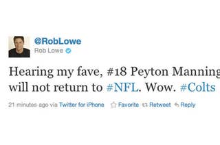 Rob Lowe Is Reporting That Peyton Manning Will Retire Today