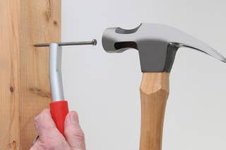 You no longer have to hold nails in place for hammering.