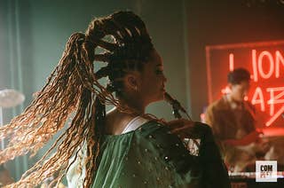 Jillian Hervey and Lucas Goodman, the duo comprising R&B group Lion Babe, perform their hit single "The Wave" in an elegant Brooklyn living room