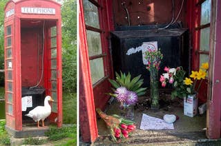A shrine has been set up in a phone box and schoolchildren have been paying tribute to "Goose".