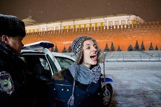 "They [beat] two of us ... before that they took us upstairs and said that we have to "suck their cocks" and that we have to be burned," the activists texted from inside the police station. Update: The eight Russian protestors were released around 12:30 Moscow time.
