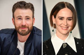 Sarah Paulson Wore A Hilariously Identical Sweater To That Iconic "Knives Out" Sweater, And I Love Chris Evans' Reaction