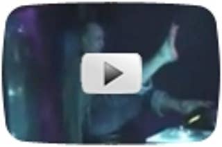 An armless DJ playing records and using his feet to ignite a lighter and smoke a cigarette.