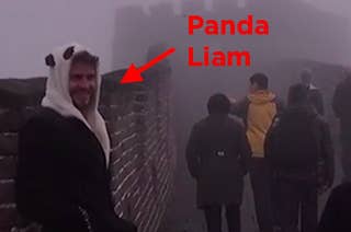 Liam Hemsworth Dressed Like A Panda And Carried Jennifer Lawrence's Purse Along The Great Wall Of China