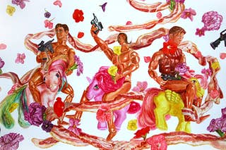 The art world descended upon Miami Beach this weekend for the annual Miami Beach Art Basel festival. WARNING: This post may contain mesh shirts, tribal fanny packs, and mature women in miniskirts, proceed with caution.