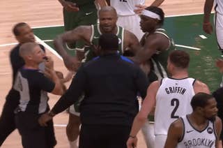 A Nets security guard with ties to Durant is banned from working games in Milwaukee after running onto the court during KD and P.J. Tucker confrontation.