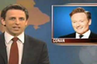 Seth Meyers offers an extended metaphor comparing the Leno/Conan situation to NBC having two wives. This was much more effective commentary than the weak cold open. "This week, you didn't need Cinemax to see someone get screwed on TV."