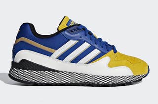 The fifth pair to be revealed from the Dragon Ball Z x Adidas collection is an Ultra Tech dressed in blue, gold, and white to represent the character Vegeta.