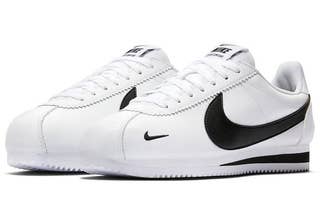 Nike has updated the timeless Cortez silhouette. The white and black leather pair adds new details like mini Swooshes on the toe and excessive heel branding