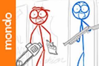 Red and Blue turn a simple video game shopping spree into a black-ops killing spree. Dick Figures was created by Ed Skudder, who wrote, directed and voiced the episode along with Zack Keller.
