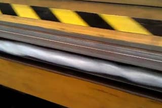 Take 23 feet of bubble wrap and insert it into a huge hydraulic press, and you get a very satisfying sound.