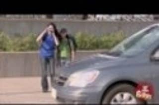 Two young female Japanese students ask passersby to take their picture. Watch what happens as the unwitting photographer crosses the street to hand the camera back to the girls.