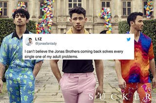 "I can't believe the Jonas Brothers coming back solves every single one of my adult problems."