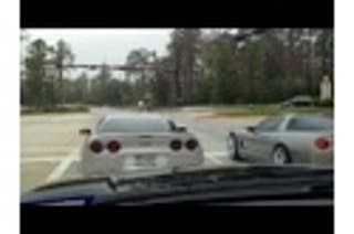 Drag racing on public streets is always dangerous. You can really hurt yourself, or, worse, someone else. Thankfully, in this case, these two Corvette drag racers only hurt their own egos. They race identical ‘Vettes, and only a few seconds into the race, one driver swerves into the other, knocking them both off the road.